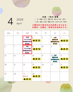 4/1(水)4/8(水) いずれの日程も午前のみの診療となります。